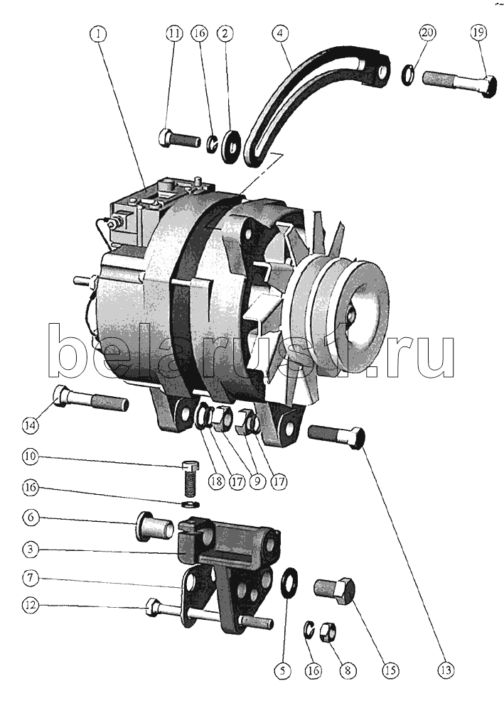 Каталог запасных частей к технике: ММЗ Д-245.7E3. Установка генератора