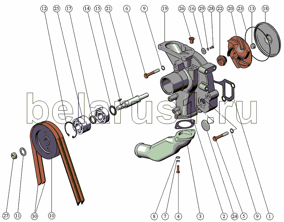 Каталог запасных частей к технике: ММЗ Д-260.7C. Установка водяного насоса