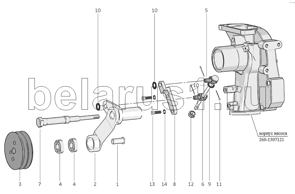 Каталог запасных частей к технике: ММЗ Д-260S3A. Установка натяжителя