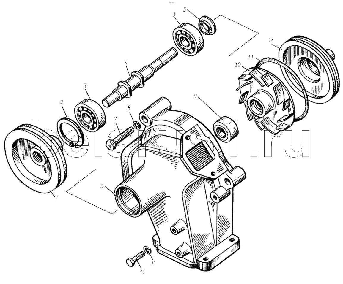 Каталог запасных частей к технике: ТМЗ-8481.10. Водяной насос