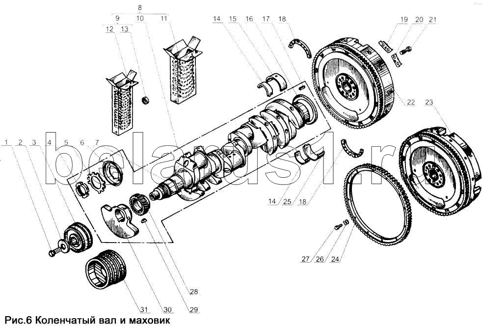 Каталог запасных частей к технике: ЯМЗ-238Д и Б. Коленчатый вал и маховик