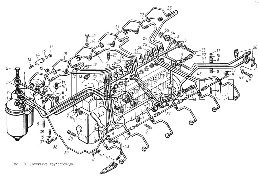 Каталог запасных частей к технике: ЯМЗ-8401.10. Топливные трубопроводы