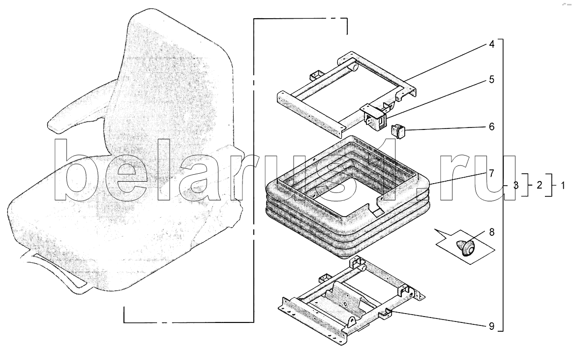 Каталог запасных частей к технике: Агротехмаш АТМ-5280. Установка сиденья водителя