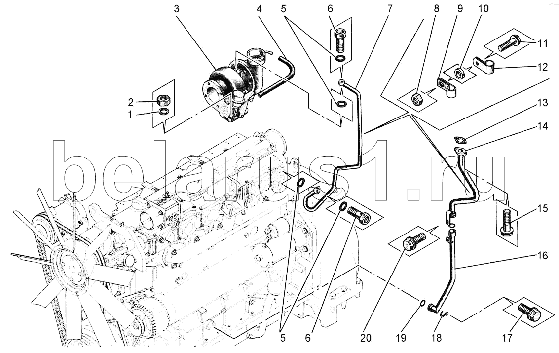 Каталог запасных частей к технике: Агротехмаш АТМ-5280. Установка турбокомпрессора