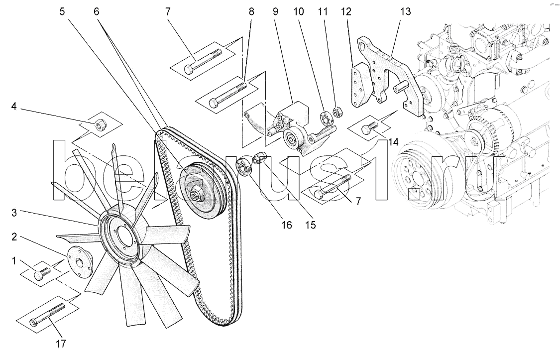 Каталог запасных частей к технике: Агротехмаш АТМ-5280. Установка вентилятора