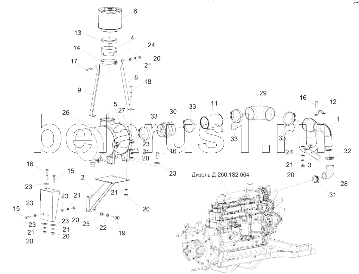 Каталог запасных частей к технике: Гомсельмаш ES4. Установка воздухоочистителя КП-4-0106080