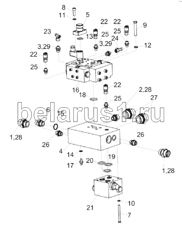 Каталог запасных частей к технике: Гомсельмаш KС-200. Гидроблок межколесной блокировки КС-200-0601330Э1