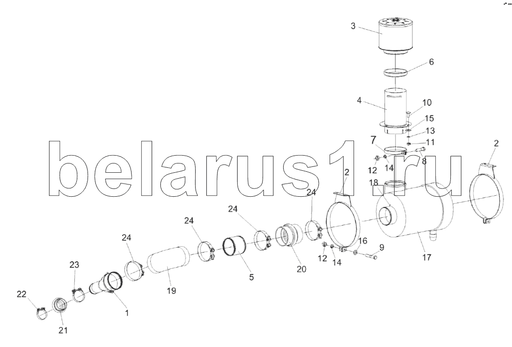 Каталог запасных частей к технике: Гомсельмаш KС-200. Установка воздухоочистителя КС-200-0116080Э1