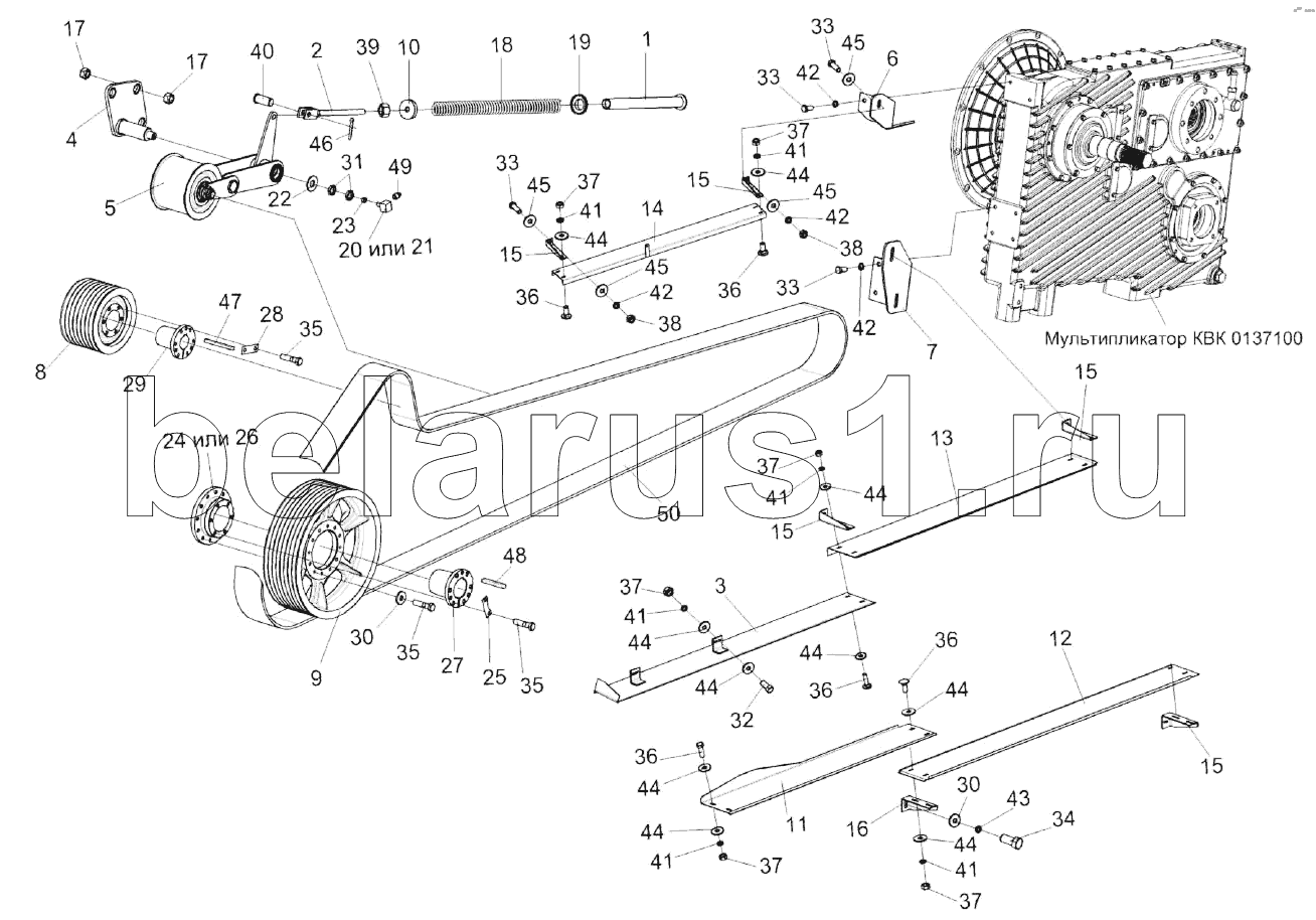 Каталог запасных частей к технике: Гомсельмаш КВК-8060. Привод измельчающего барабана КВК 0130000