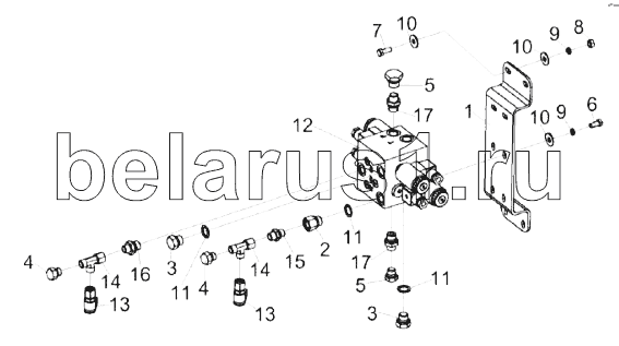 Каталог запасных частей к технике: Гомсельмаш КЗС-1624-1. Гидроблок двухсекционный КЗК-1420-0602330
