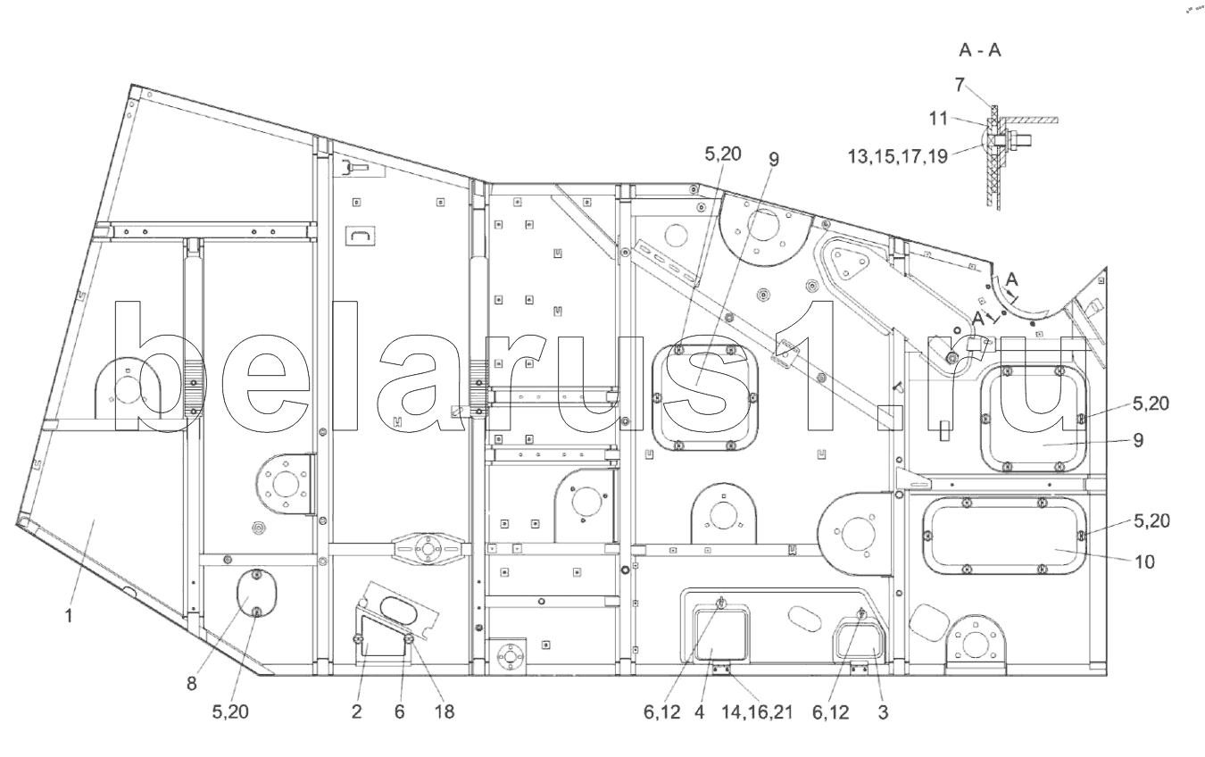Каталог запасных частей к технике: Гомсельмаш KЗС-812. Боковина правая КЗК-8А-0202060