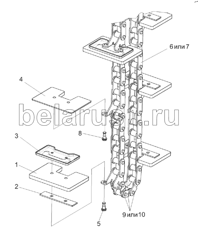 Каталог запасных частей к технике: Гомсельмаш KЗС-812. Цепь элеватора КЗР 0208080Г