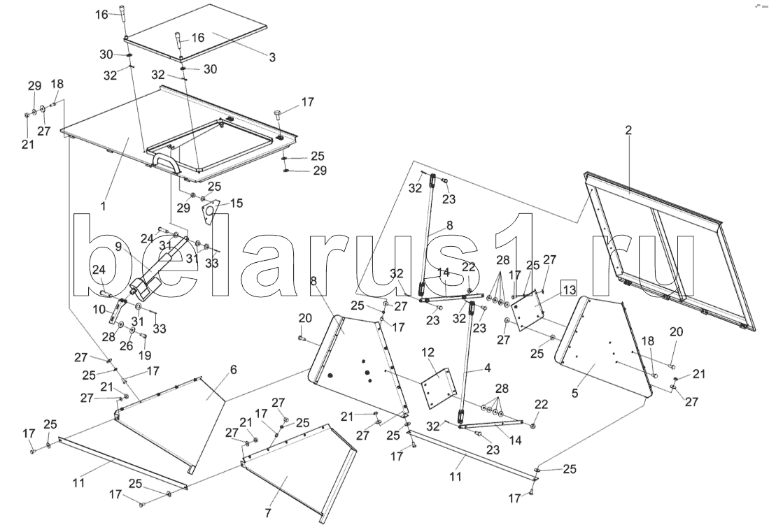 Каталог запасных частей к технике: Гомсельмаш КЗС-812С. Крыша бункера КЗК-7-0204000