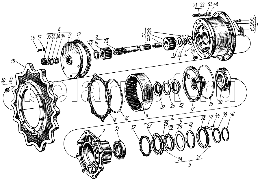 Каталог запасных частей к технике: ХТЗ Т-150. Мост задний с коническими передачами