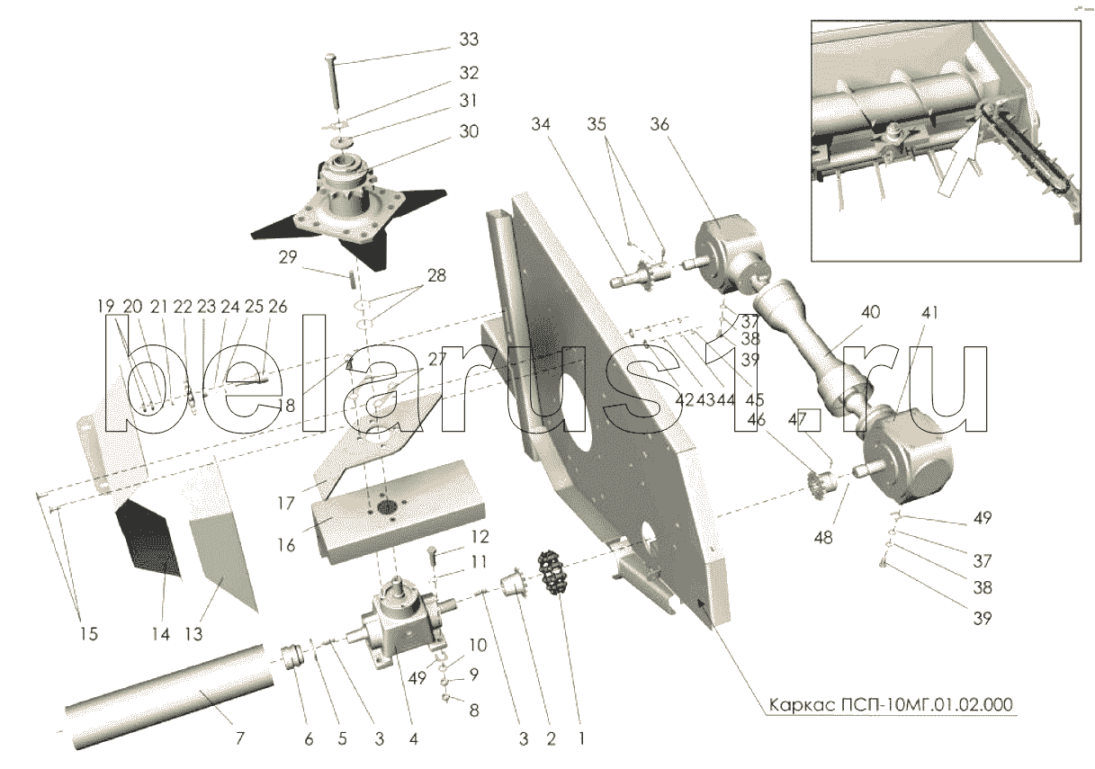 Каталог запасных частей к технике: Клевер ПСП-10МГ "Falcon". Корпус жатки (привод)