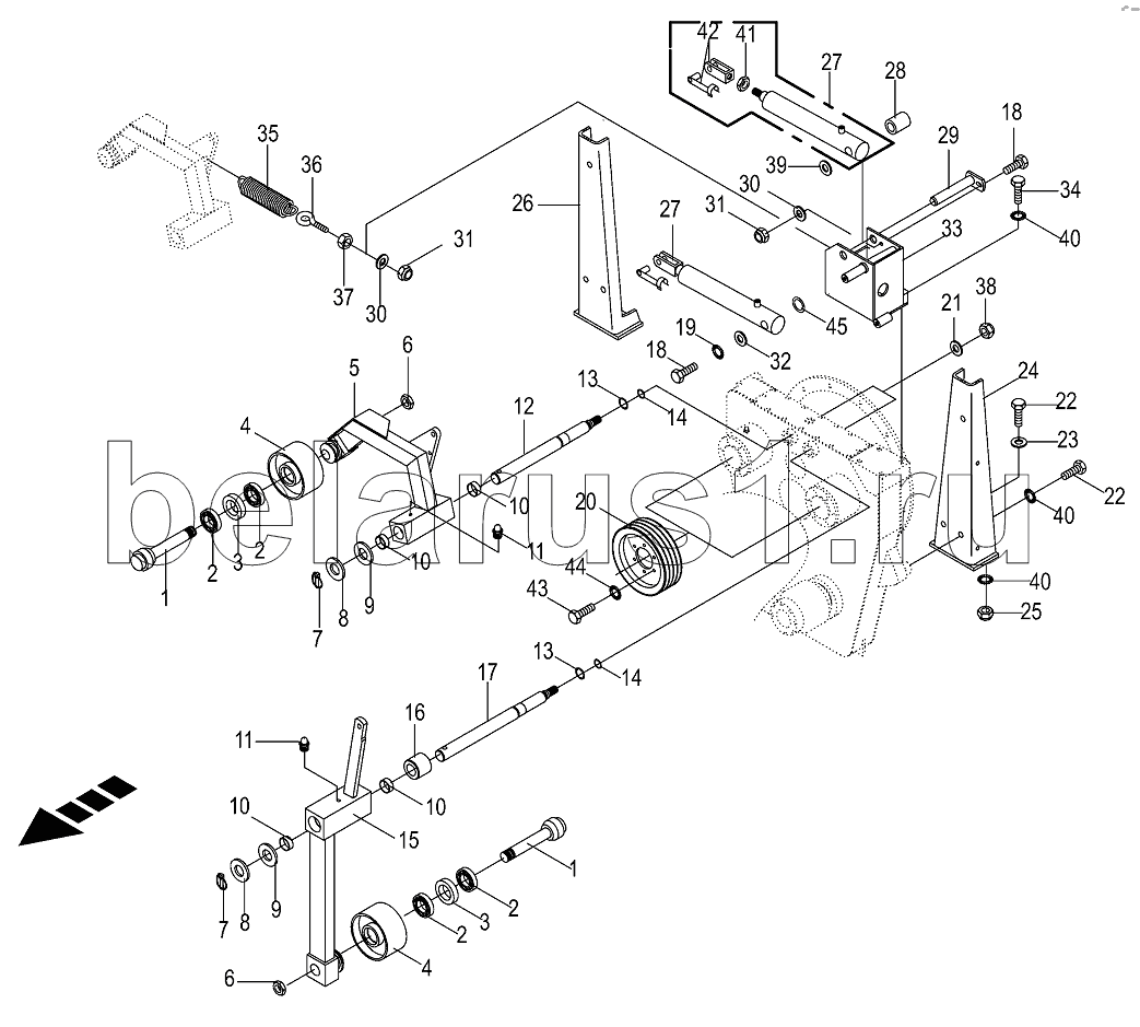 Каталог запасных частей к технике: KRONE BIG-M-420. Tensioning device on auxiliary gearbox