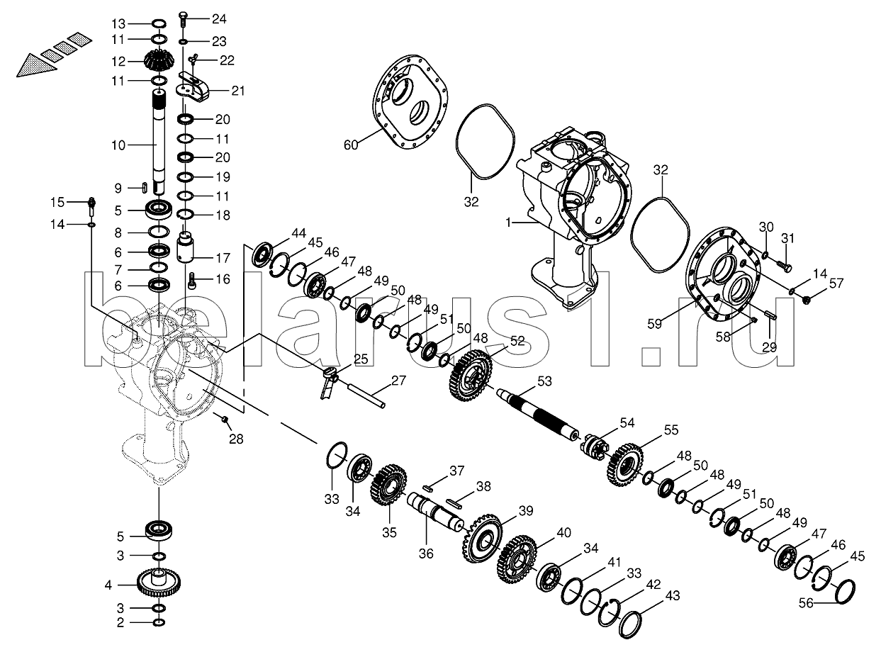 Каталог запасных частей к технике: KRONE BIG-M-420. Transmission part II-front