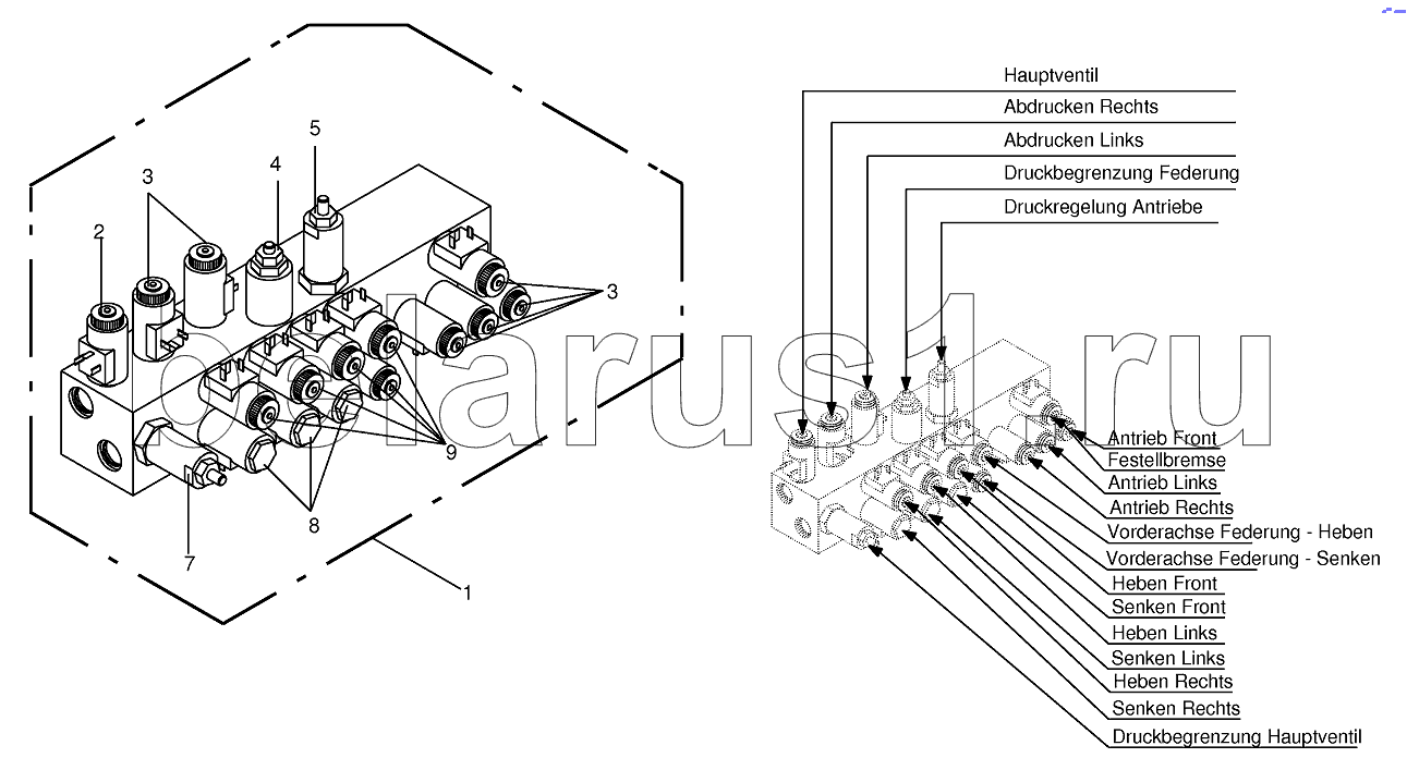 Каталог запасных частей к технике: KRONE BIG-M-420. Working hydraulics-Valve block