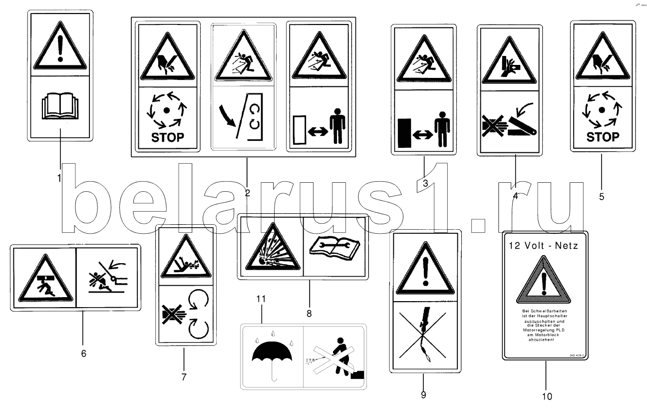 Каталог запасных частей к технике: KRONE BIG-M-II. Warning signs