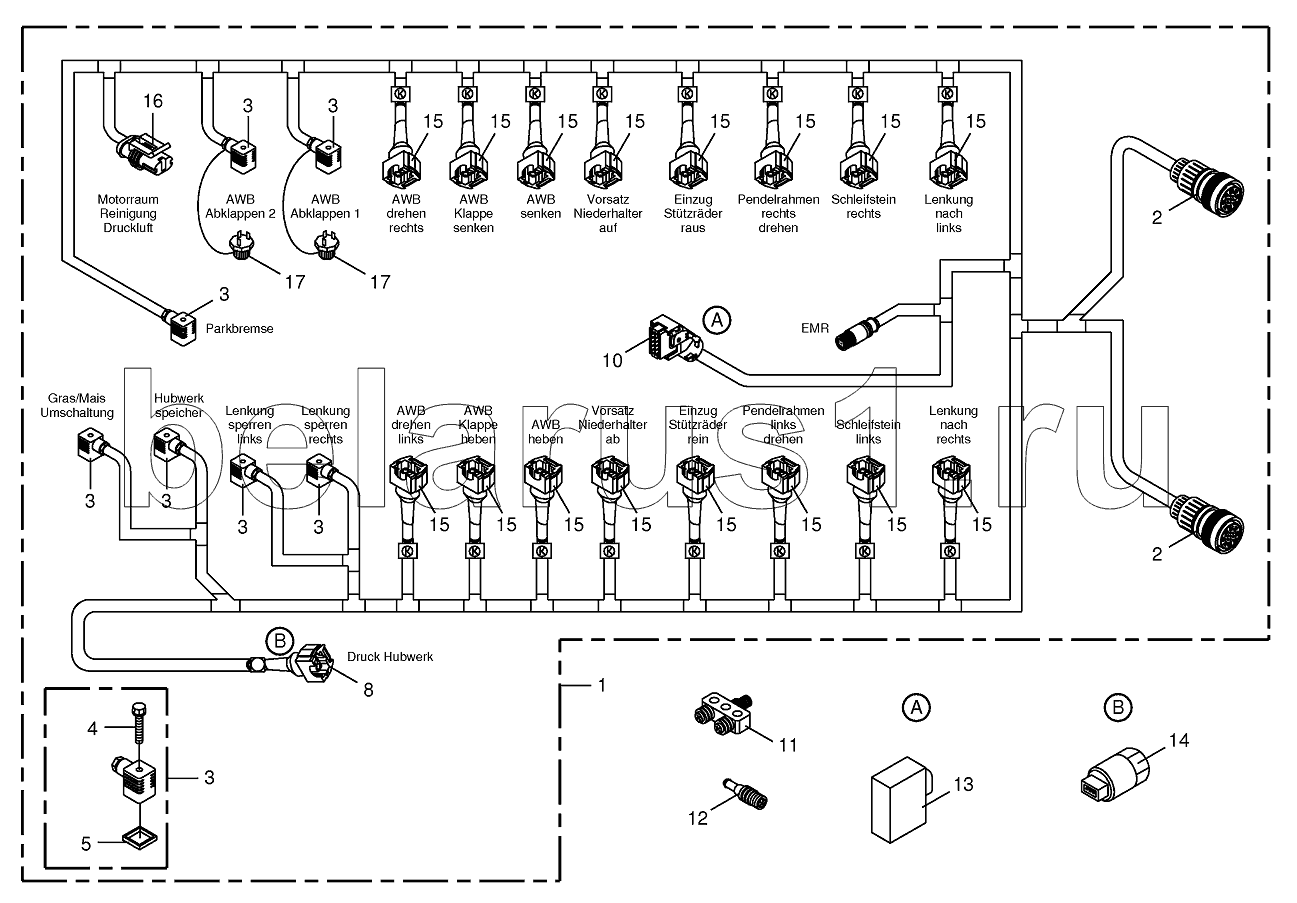 Каталог запасных частей к технике: KRONE BIG-X-1100. Wiring Harness-valve block