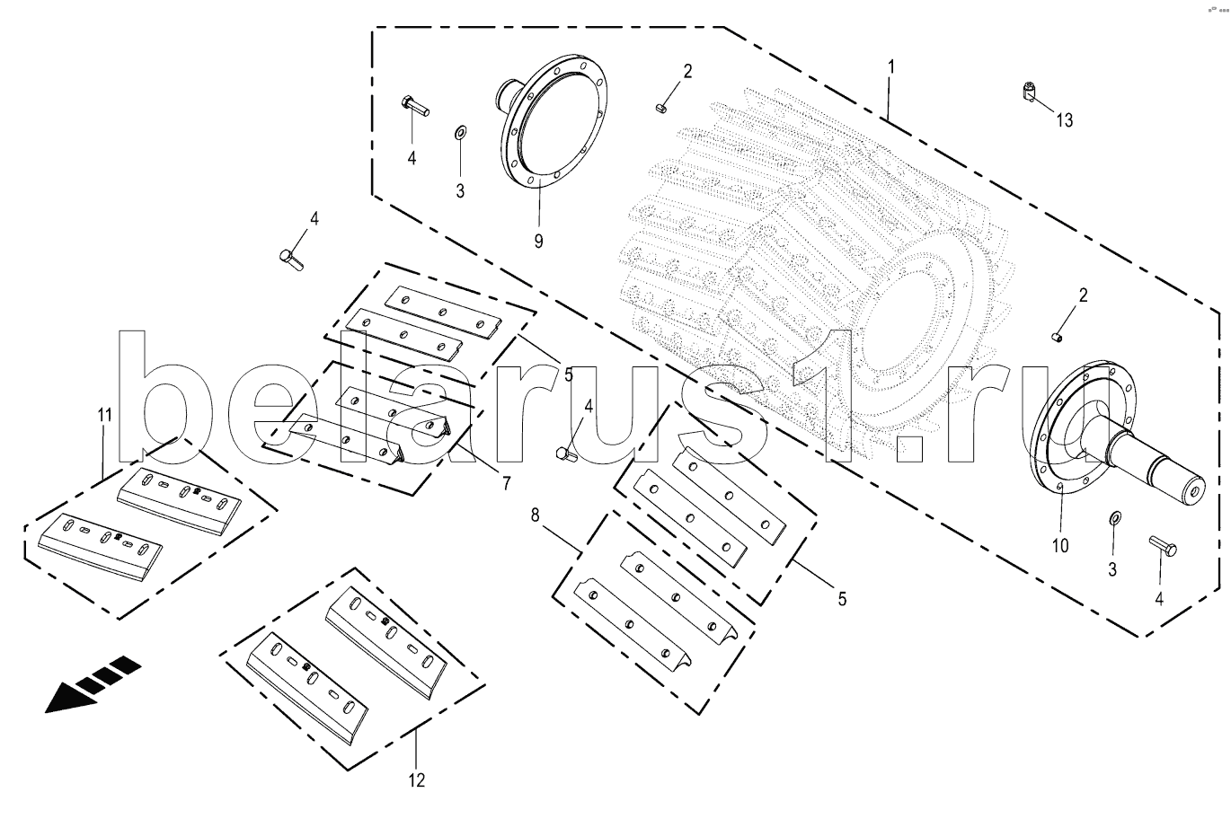 Каталог запасных частей к технике: KRONE BIG-X-480. Chopping drum - 36 Knifes