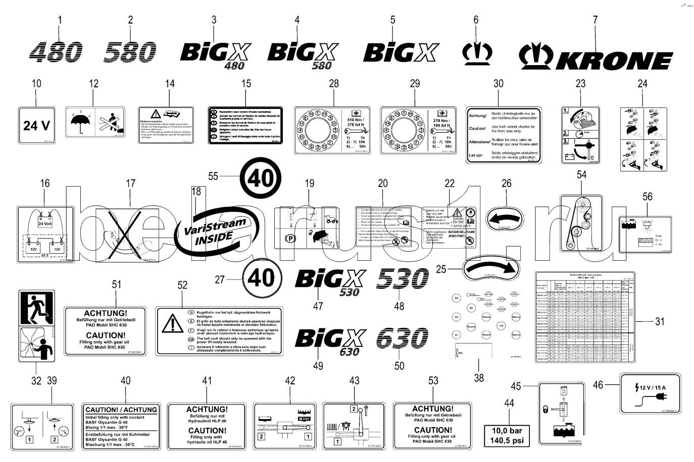 Каталог запасных частей к технике: KRONE BIG-X-480. General information labels