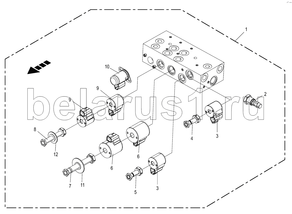 Каталог запасных частей к технике: KRONE BIG-X-480. Hydraulics - front block-(24V)