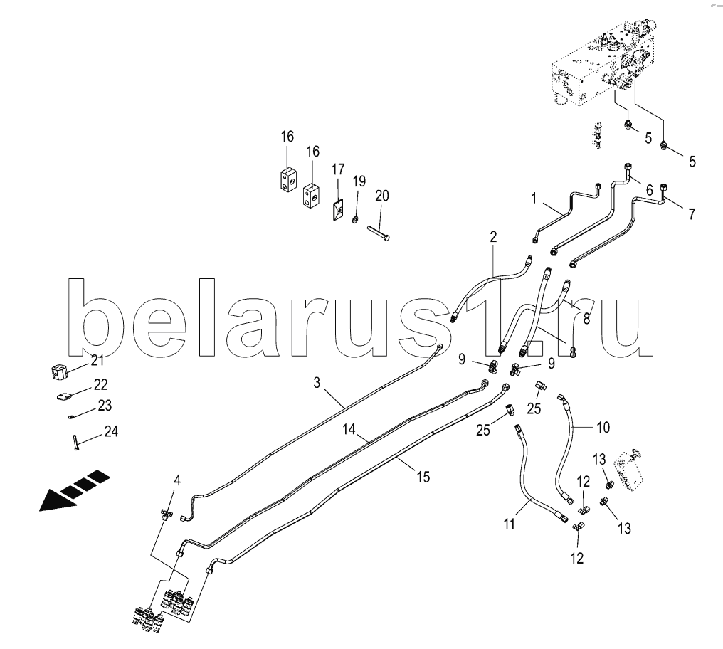 Каталог запасных частей к технике: KRONE BIG-X-480. Hydraulics - pressure lines - front attachment