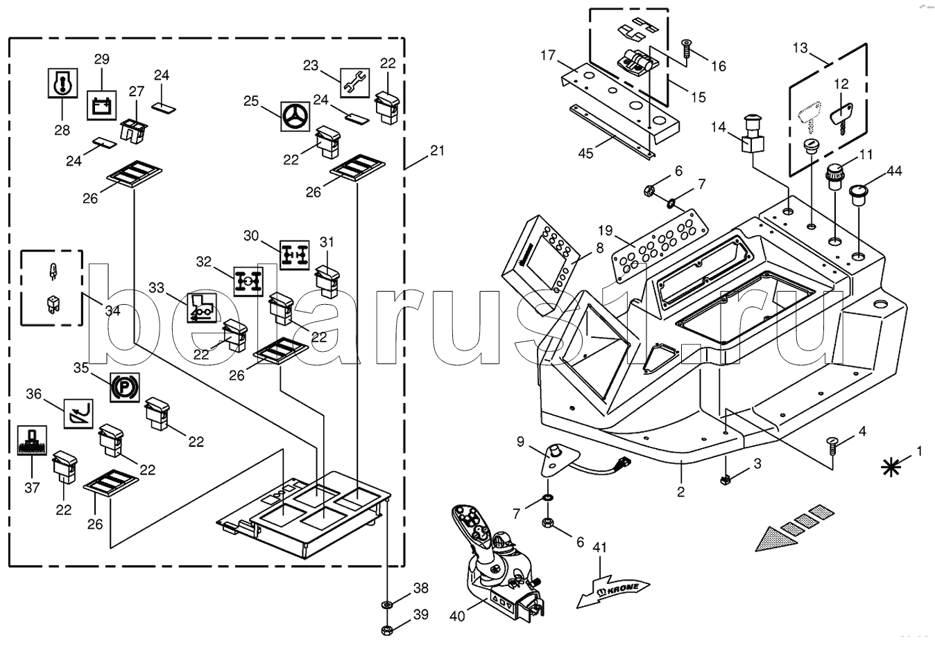 Каталог запасных частей к технике: KRONE BIG-X-500. Control box mounting parts-top