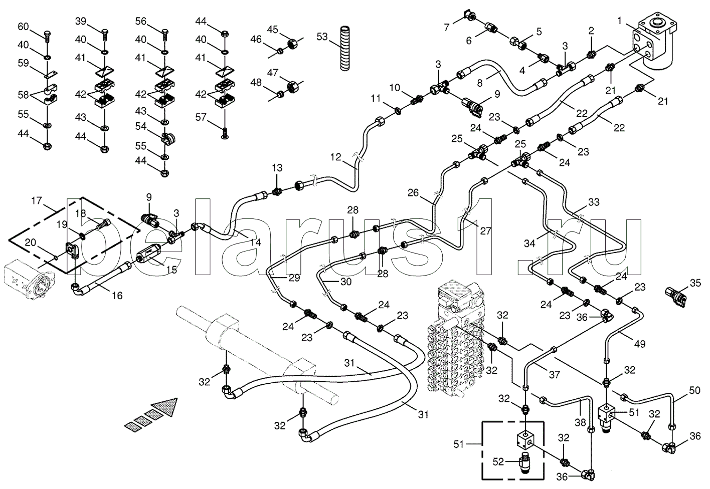 Каталог запасных частей к технике: KRONE BIG-X-500. Hydraulic steering system