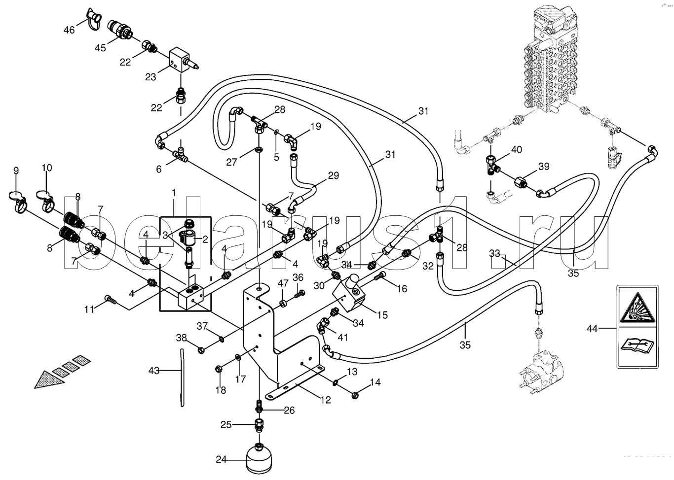 Каталог запасных частей к технике: KRONE BIG-X-500. Hydraulic panel-additional axis