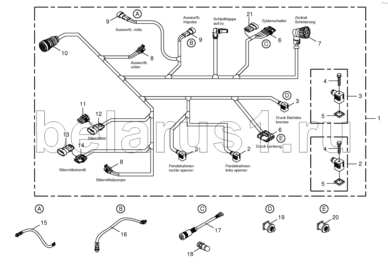 Каталог запасных частей к технике: KRONE BIG-X-600. Wiring harness - below the cabin