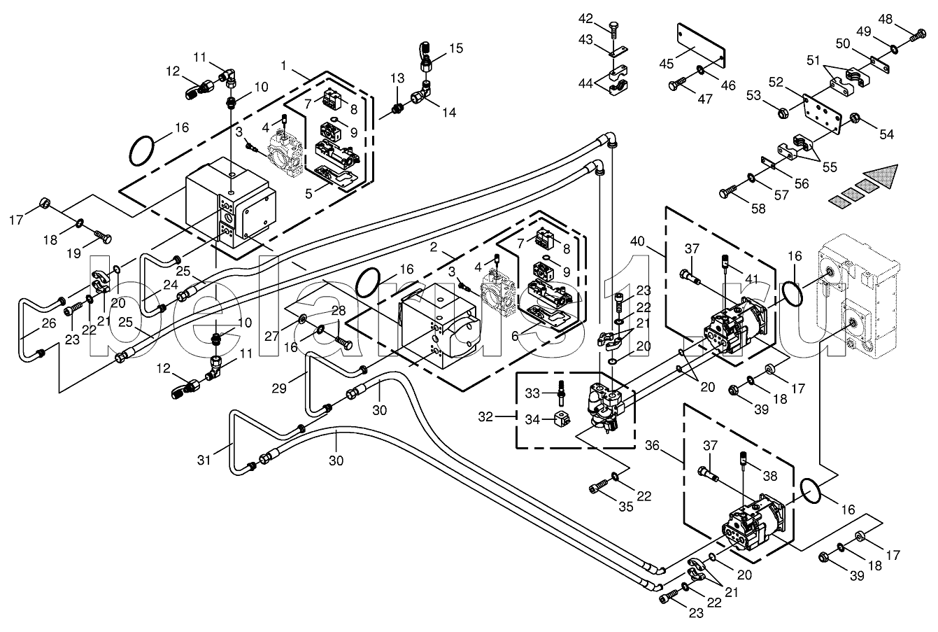 Каталог запасных частей к технике: KRONE BIG-X-650. Hydraulics - front attachment / feed rollers