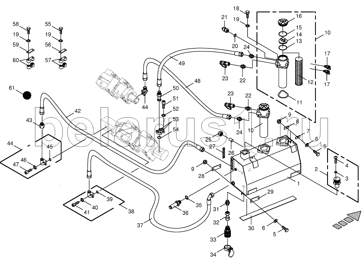 Каталог запасных частей к технике: KRONE BIG-X-650. Hydraulic tank/suction lines