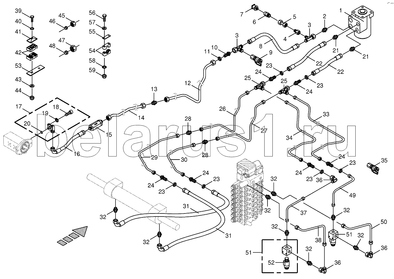 Каталог запасных частей к технике: KRONE BIG-X-800/1000. Hydraulic steering system