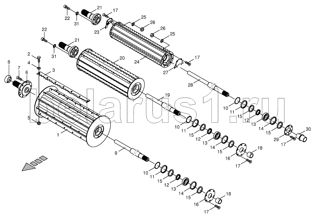 Каталог запасных частей к технике: KRONE BIG-X-800/1000. Top feed rollers