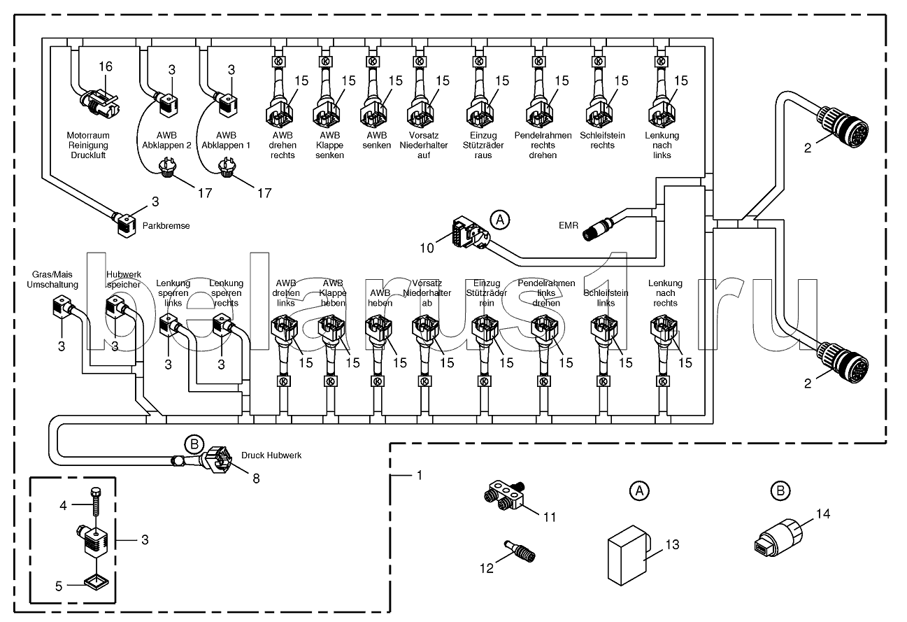 Каталог запасных частей к технике: KRONE BIG-X-800/1000. Wiring Harness-valve block