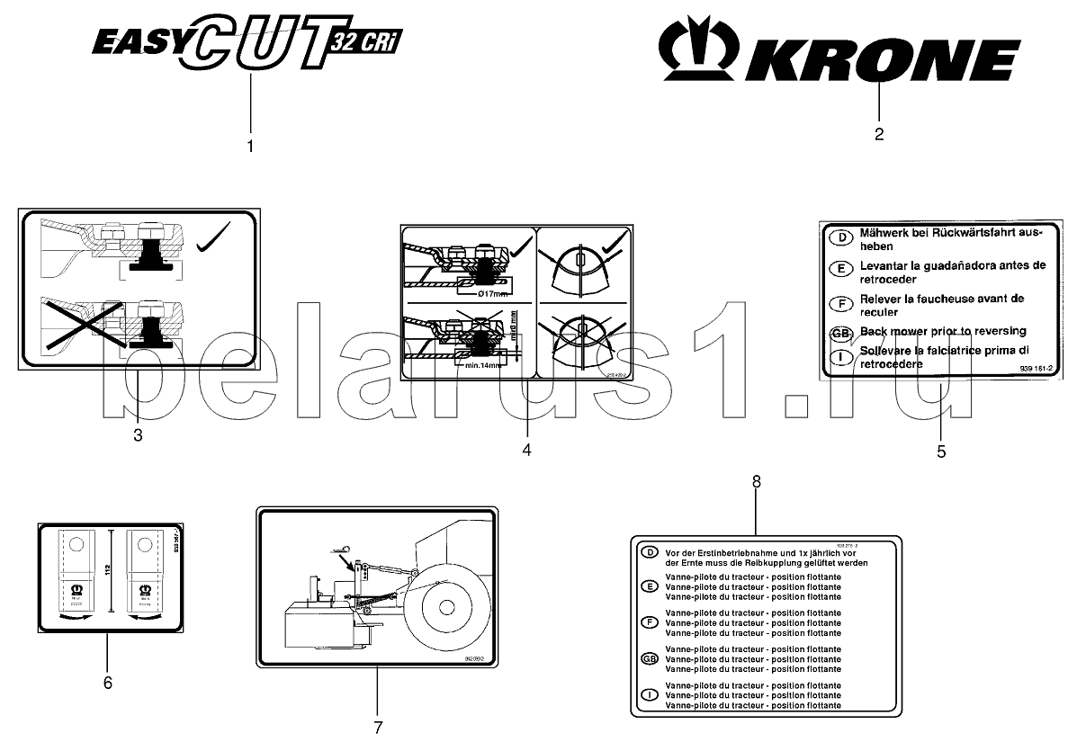 Каталог запасных частей к технике: KRONE EC 32CRI. General information labels