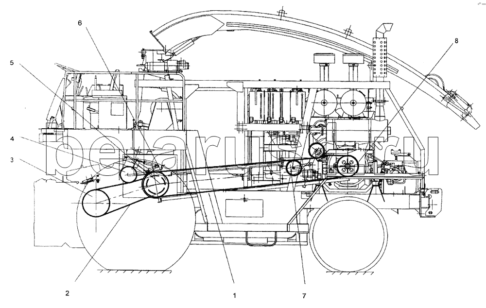 Каталог запасных частей к технике: КЗК Енисей-324. Схема ременных передач левой стороны