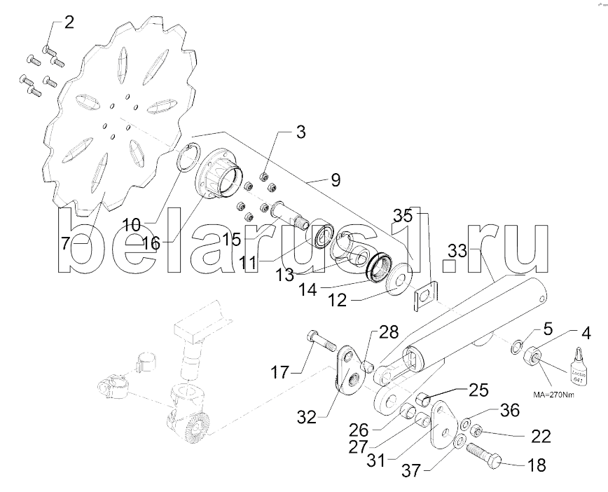 Каталог запасных частей к технике: Lemken Juwel 8M. 6579392 Swinging arm