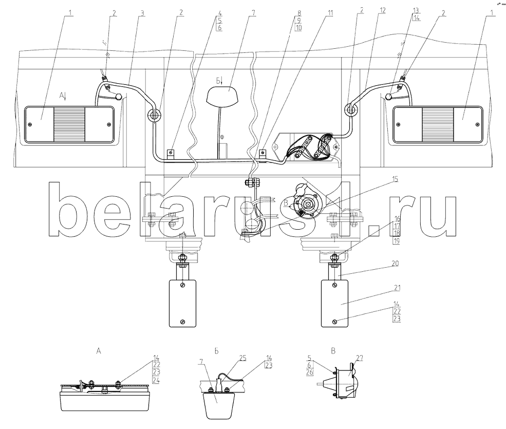 Каталог запасных частей к технике: МТЗ 1025.5. Установка фонарей задних