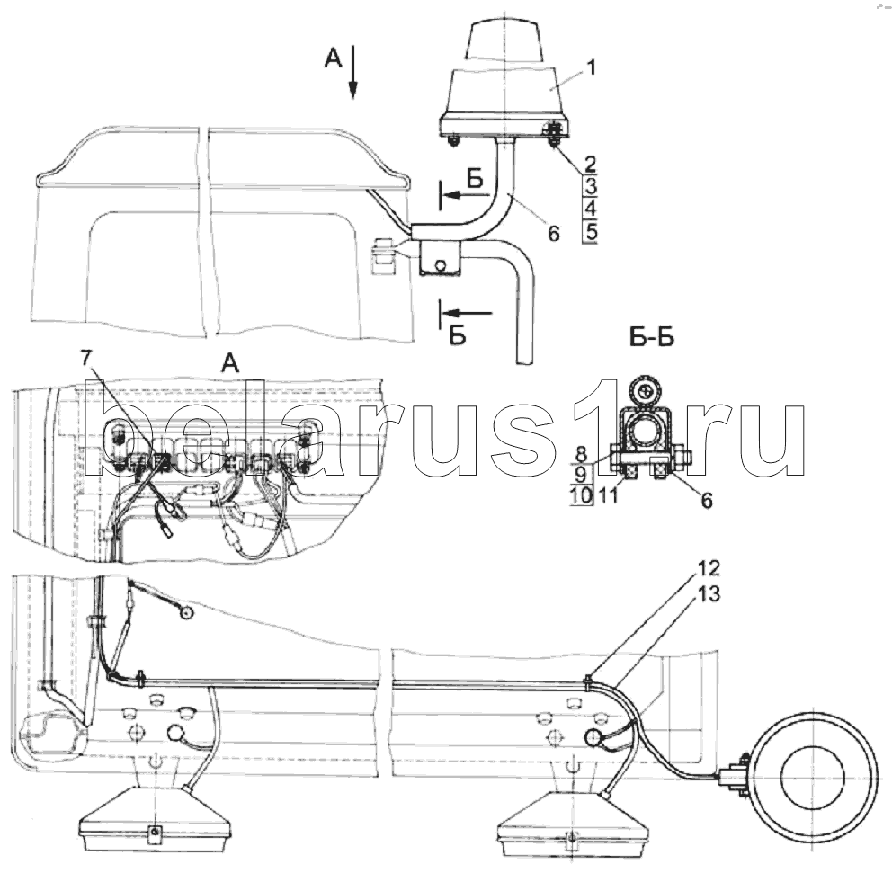Каталог запасных частей к технике: МТЗ 1220. Установка маяка сигнального