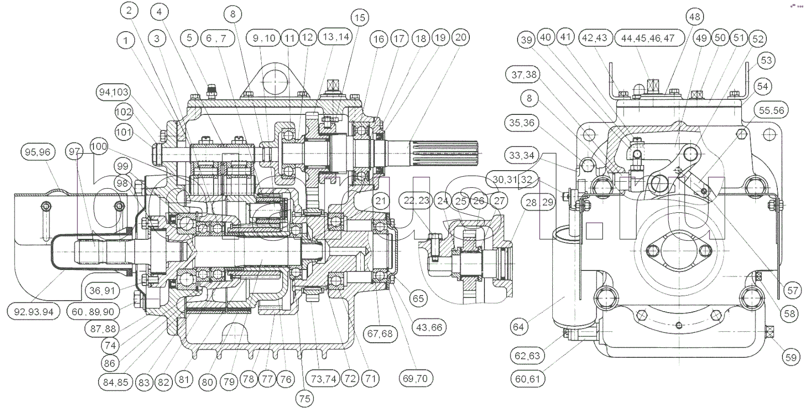 Каталог запасных частей к технике: МТЗ 1523.5. Редуктор переднего ВОМ