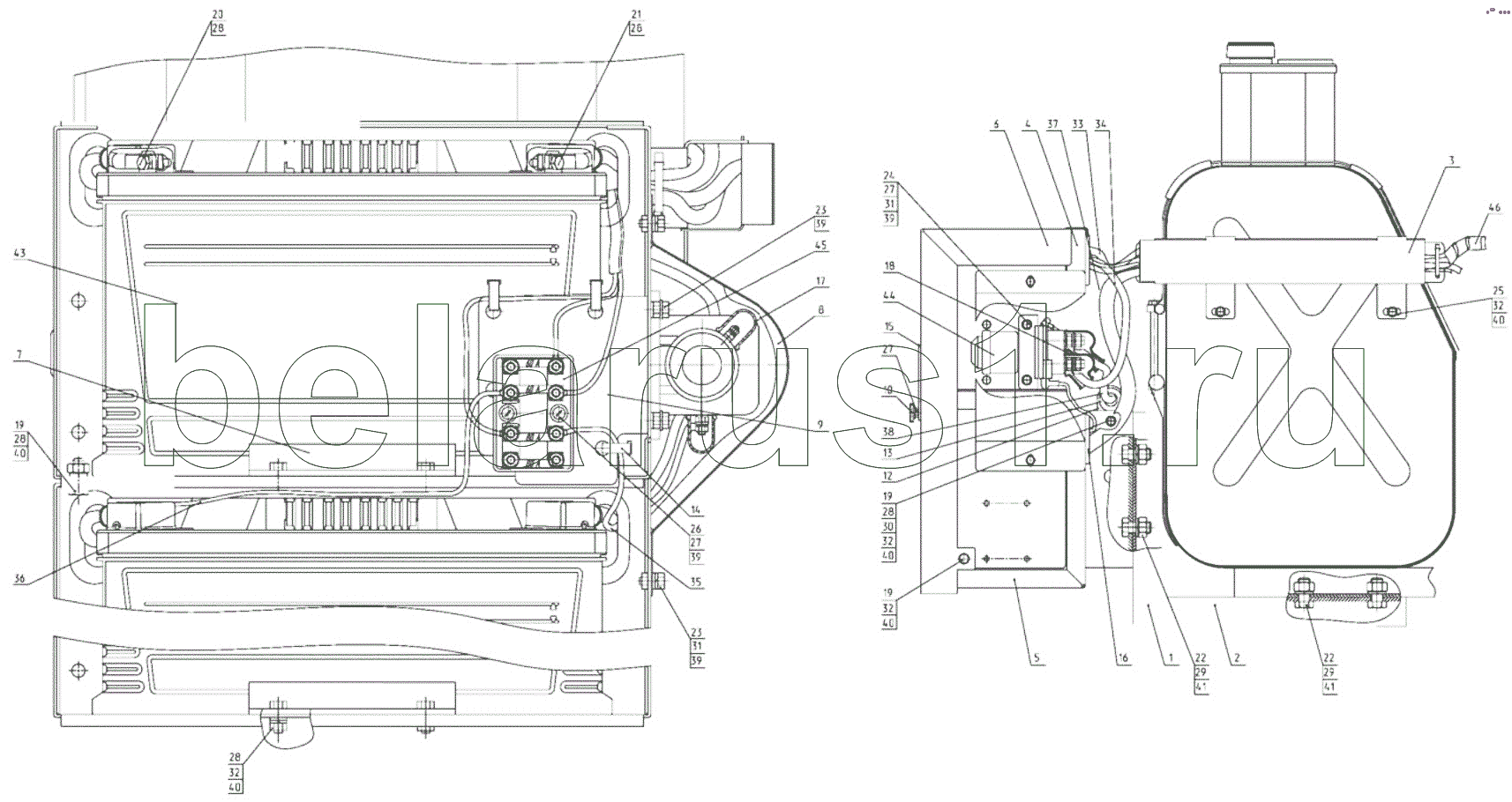 Каталог запасных частей к технике: МТЗ 1523.5. Установка батарей аккумуляторных