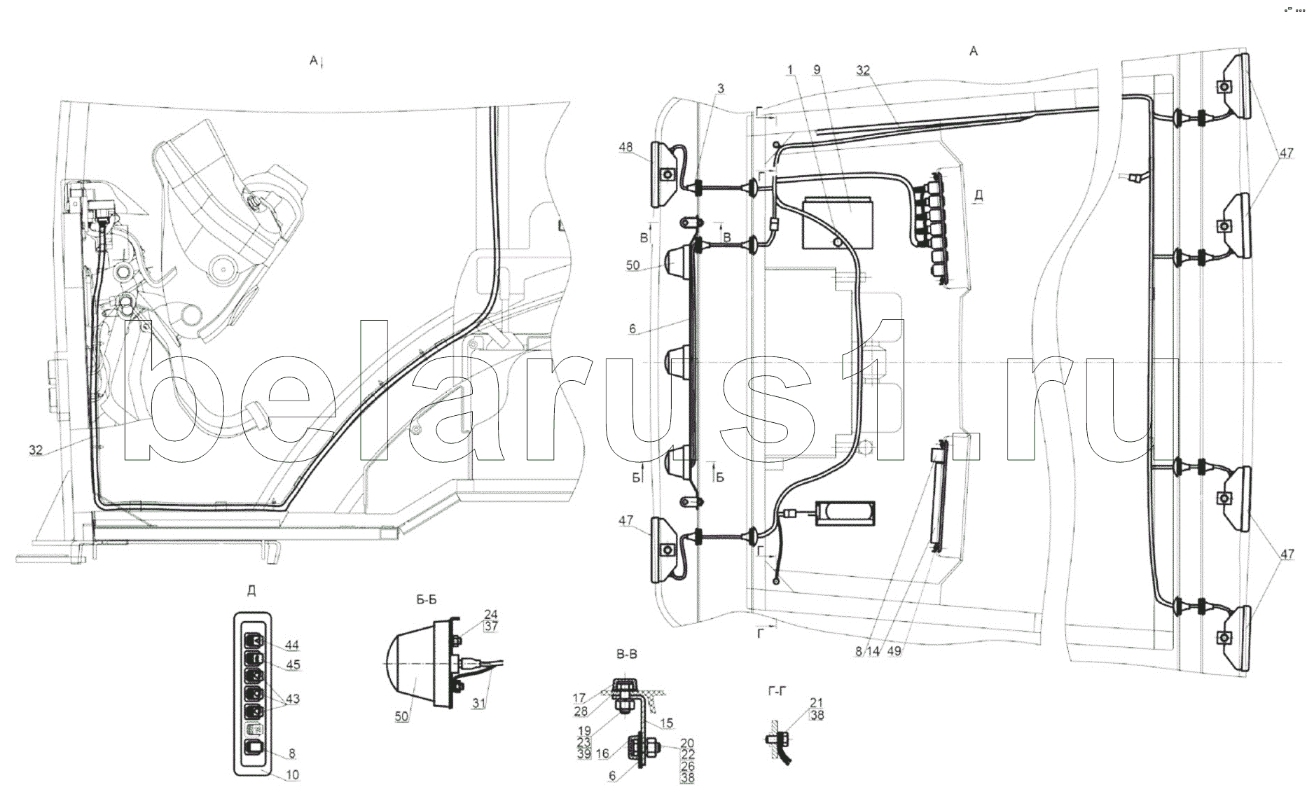 Каталог запасных частей к технике: МТЗ 1523.5. Установка фар рабочих