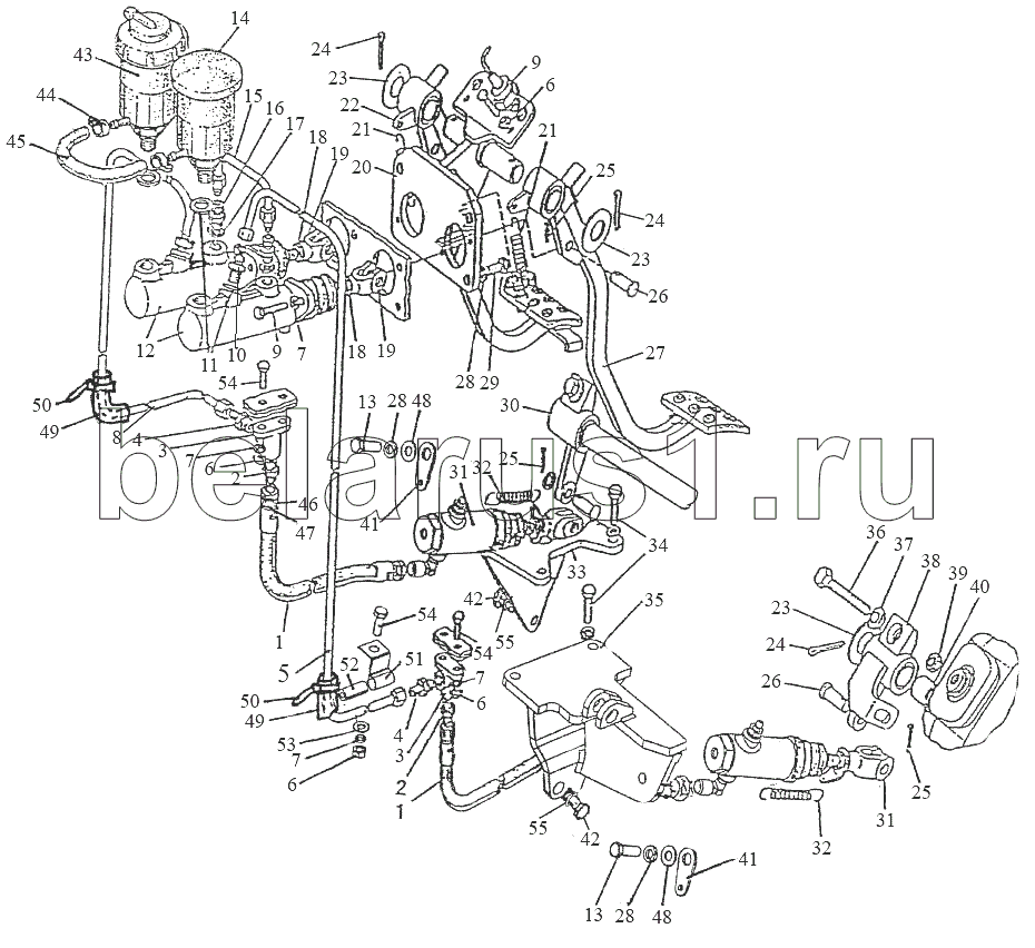 Каталог запасных частей к технике: МТЗ 1523.5 с ГМТ. Управление тормозами