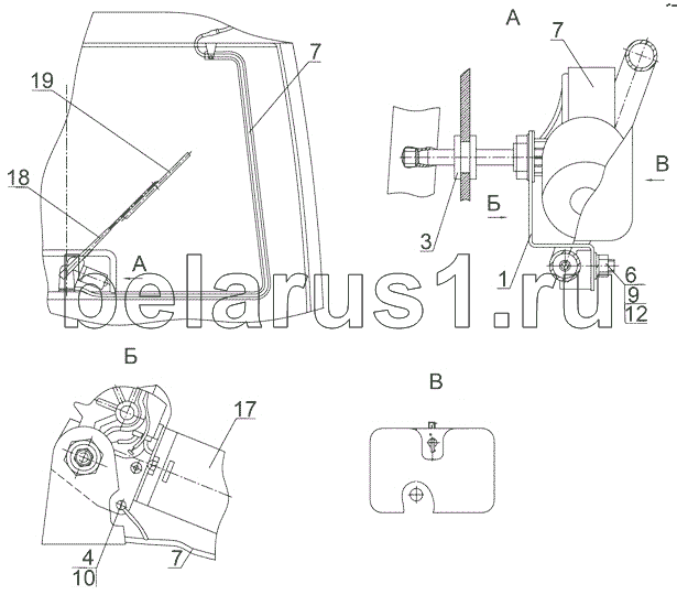 Каталог запасных частей к технике: МТЗ 1523.5 с ГМТ. Установка заднего стеклоочистителя