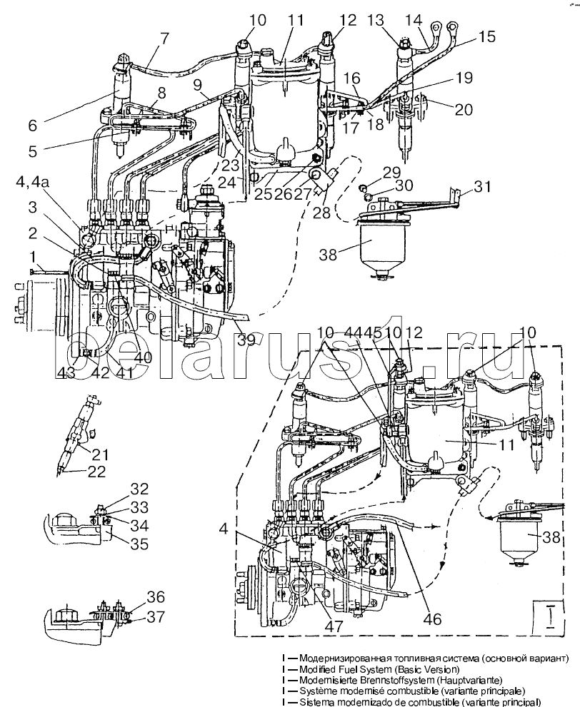 Каталог запасных частей к технике: МТЗ 800/900. Трубопроводы топливные и установка топливной аппаратуры