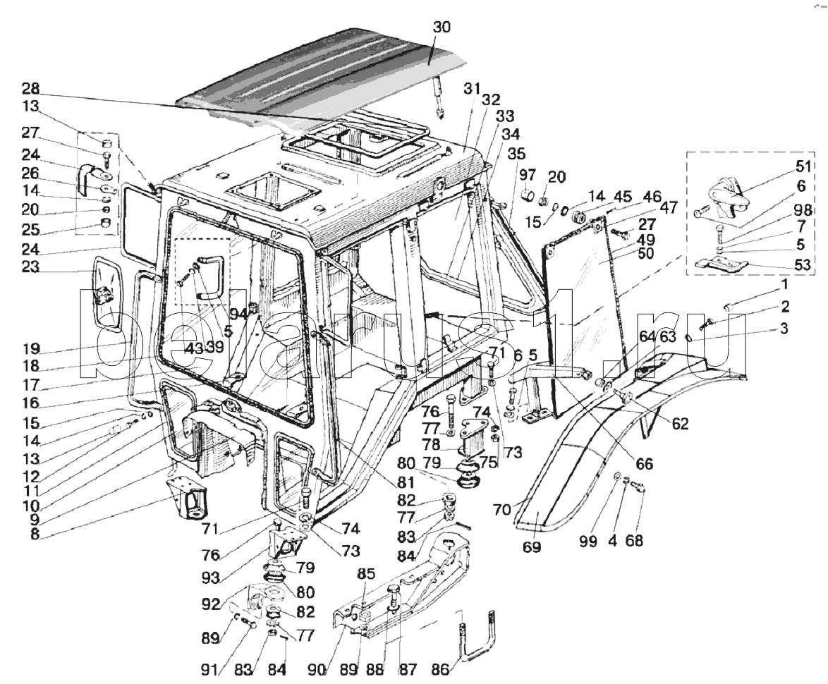 Каталог запасных частей к технике: МТЗ 892. Кабина трактора. Крылья задние (вариант)