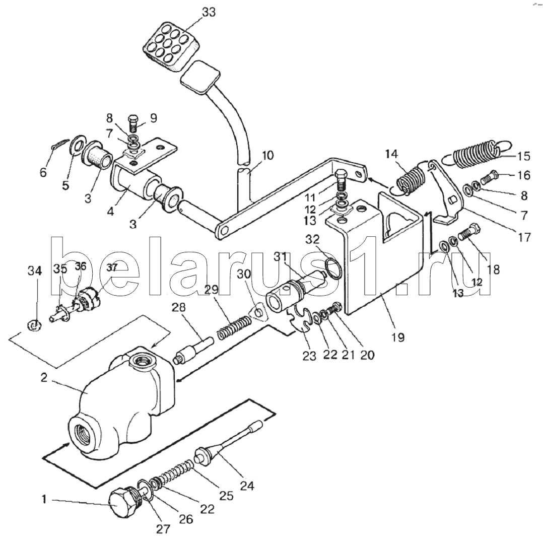 Каталог запасных частей к технике: МТЗ 892. Управление блокировкой дифференциала